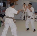 | 感想文 この度は昇段審査を受審させていただき有難うございます。肩の力を抜いて審査に臨んだつもりでしたが、当日はすごく緊張していて体全体が力んでいて思うように動けなかった 気がします。課題は残され、勉強不足を感じましたが今日の教訓をこれからの稽古に活かしていこうと思います。師範、先生方、師範代、先輩方、道場生の皆様遅くまで有難うございました。 |