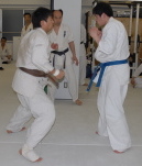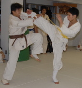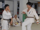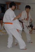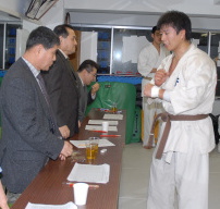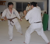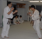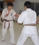 | 審査直後の感想 前回、師範の温情で受審させていただき、あれから一年間がんばってきた。しかしまだまだ稽古不足である。また来年の審査に向けてやり直したいという気持ちになった。試合ではある程度の実績を出すことができたと自分では思っているが、十人組手はそれとはまた違った辛さや難しさがある。空手の道をもっと追求したい。 |