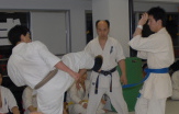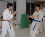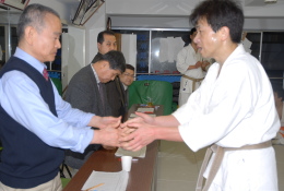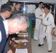 | 審査直後の感想 挑戦という意味で受けた。拳立てだけは50回やろうと決めていたが、体力がないので地道に練習を続けた。死ぬ気でやったら50回できたのでうれしい。基本と移動は自分で満足していない。十人組手は連続ではなかったが、空手の奥深さを感じることができて、変な言い方だがおもしろいと思った。年齢を重ねても的確に対応できるよう、これからも努力したい。 |