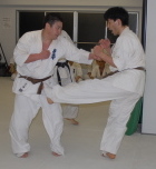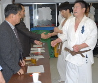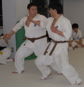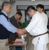 | 感想文 昇段審査は忘れる事ができない1日となりました。先生方、道場生の皆さん遅くまで有難う御座いました。入門してからいつの間にか8年も経っていて、四谷道場の「ぬし」とも裏でささやかれ、今日に至りました。1週間に1回しか稽古にでれないのがほとんどでした。しかし1回の1時間稽古を大切にしてきたつもりです。昇段審査はいつもの稽古の延長として受けさせて頂きました。10人組手では、稽古不足、スタミナの無さをまざまざと見せつけられました。決してひとりでここまで来れた訳ではなく、目標を持った道場生、先生方の精神だと思います。自分もこの精神を後輩に伝える事を約束します。押忍 |