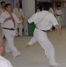 | 審査直後の感想 もともと極真に入ったのは強くなりたいのとやせたかったからである。意思に反して六年経った今では体重はどんどん増えている。7人目から崩れて自分の空手ができなくなってしまった。師範からリラックスして技を出すよう意識しろと言われ、5人目まではやったつもりだが、だんだん技が荒くなってしまった。平常心を心がけて稽古に精進したい。 |